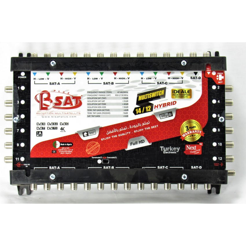 Multiswitch Next 14/12 pour 3 satellites avec 12 participants (convient uniquement pour les LNB Quattro) Il est conçu pour recevoir 4 k Ultra HD Full HD 3D qualité HD. Il a une faible perte et une isolation élevée entre les niveaux de réception assurent les plus hauts niveaux de qualité d'image et de son, même sur de grandes longueurs de câble. Technologie LNB éprouvée des millions de fois pour la technologie à l'intérieur. Il dispose d'une LED multifonctionnelle qui indique les différents états de fonctionnement.